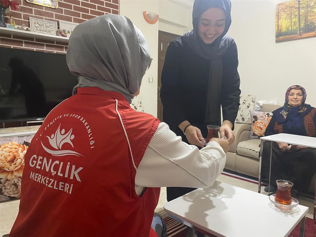 Gençlik Merkezlerince yürütülen “Çaya Geliyoruz” projesi kapsamında Düzce Gençlik Merkezi üyelerini ve ailelerini evlerinde ziyaret ederek, akşamları çay muhabbetine evlerinde misafir olunuyor. Bu hafta Lise okul temsilcimiz Sudenaz Kahraman’ın evine misafir olundu.