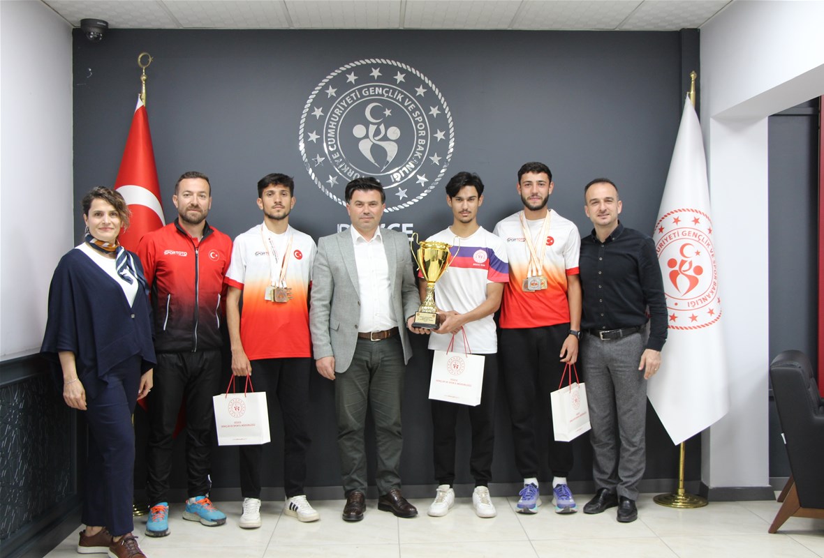 Şampiyonada Orta Mesafe Türkiye üçüncülüğü, Uzun Mesafe Türkiye Şampiyonluğu,Sürat Yarışı Türkiye İkinciliği elde eden sporcumuz Hüseyin Yüce, Orta Mesafe Türkiye Şampiyonluğu , Uzun Mesafe Türkiye ikinciliği,Sürat Yarışması Türkiye üçüncülüğü elde eden sporcumuz Muhammed Sadık Seydioğlu ve ilimiz sporcusu Altan Eren Ersoy antrenörleri Fatih Öztürk ile birlikte İl Müdürümüz İsa Yazıcı’yı ziyaret etti.