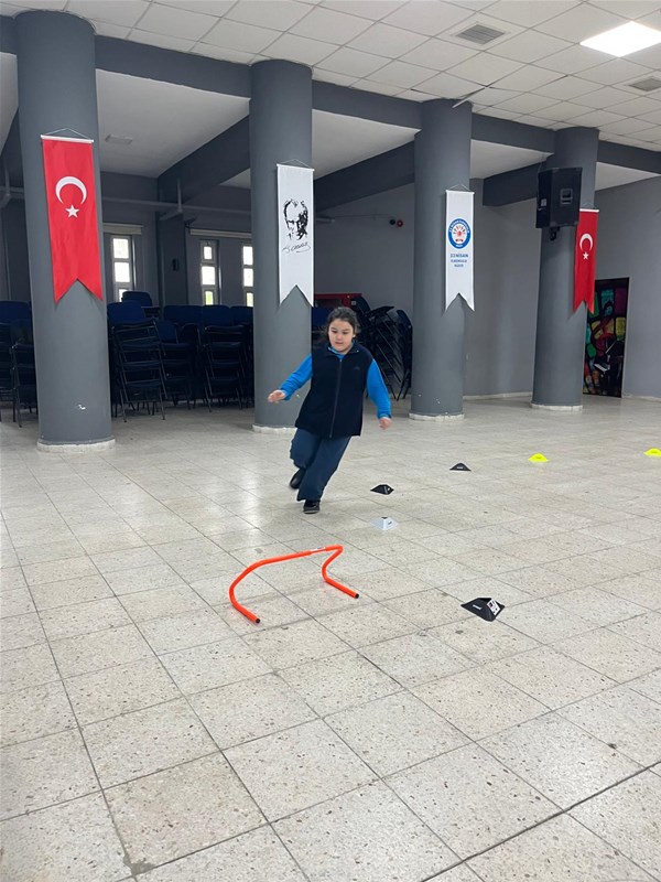 Yaygınlaştırma faaliyeti olarak planlanan etkinlikte,Bulgaristan’daki hareketlilik sürecinde gözlemlenen antrenman modelleri ve istasyon temelli uygulamalar sahaya aktarıldı.6–10 yaş grubuna yönelik program; dinamik ısınma çalışmaları,sürat geliştirme sprint uygulamaları,mini engel parkurları,durarak uzun atlama istasyonu, koordinasyon ve reaksiyon geliştirmeye yönelik oyun temelli çalışmalar ile “hazine sandığı” etkinliği gibi çoklu istasyon modeli çerçevesinde uygulandı.Çalışmalar,temel motor becerilerin geliştirilmesine odaklı; güvenli,kapsayıcı,erişilebilir ve yaşa uygun bir yaklaşımla yürütüldü.